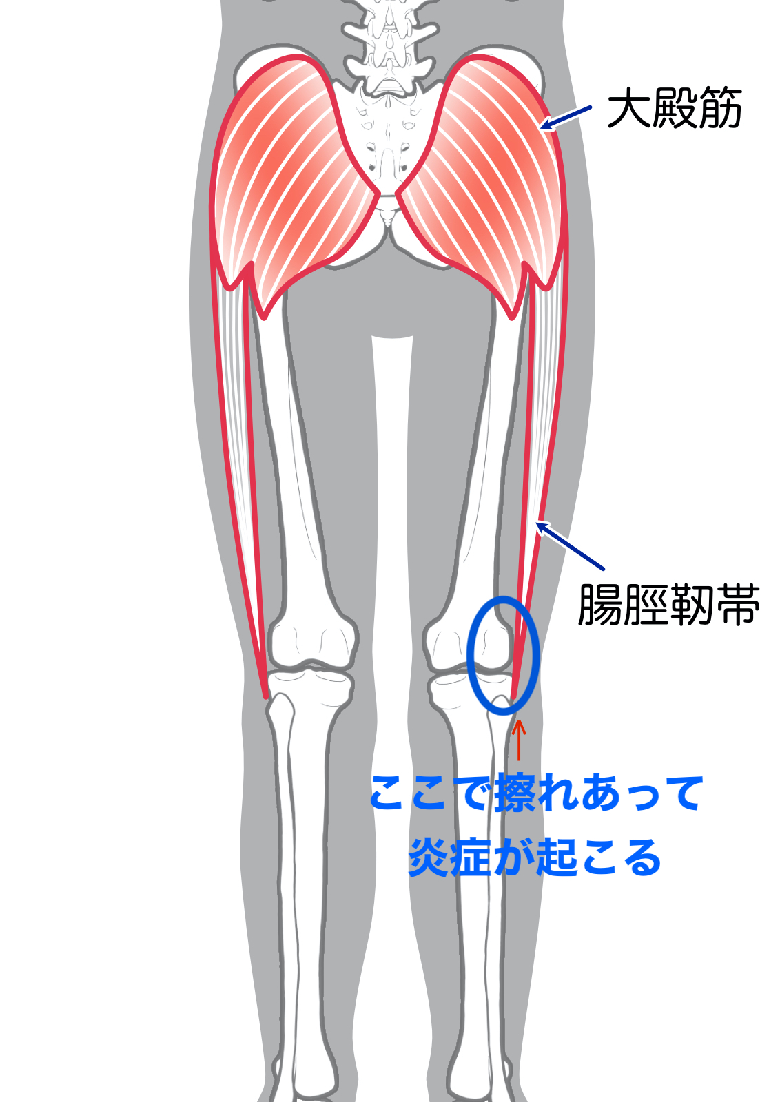 このこすれる刺激が繰り返されることで腸脛靭帯に炎症が起き、痛みが出るのが腸脛靱帯炎ということです。