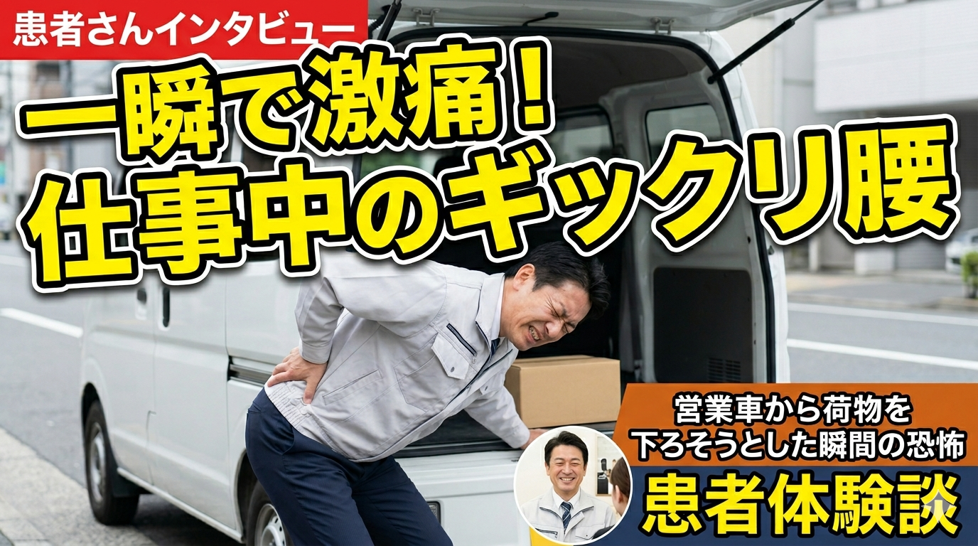 今回はYoutube動画のご紹介です。お仕事中にギックリ腰になってしまった方のインタビュー動画となっております。